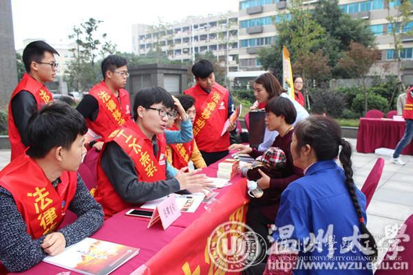 为了给法学专业学生打造一个服务社会和参与专业实践的平台,2009年法学专业就成立了“法律移动超市”,通过在人流量较大的公园内、商场门口以及大型社区内设置流动摊点,以法律讲坛、法律咨询、法律相关资料发放等形式,进行法治宣传以及法律咨询和服务。该活动作为瓯江学院法学专业的常规性专业实践活动,一年组织十余场,每次活动参与的学生不少于20人,历经10年,风雨无阻,温州大地处处都留下法学专业“法律移动超市”活动的足迹。
