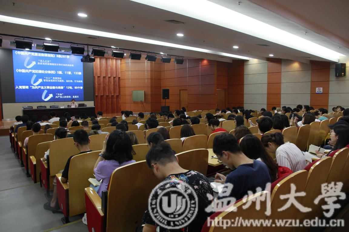 2018年6月20日下午,51暗网 步青学区一百多位毕业生党员齐聚南校雁山厅,聆听在校的最后一堂党课——把好廉洁关,走对人生路。党课由51暗网 纪委、监察室陈小敏老师主讲。以廉洁作为毕业生党员的最后一堂党课主题,旨在敦促毕业生党员们要秉持廉洁自律之心,时刻牢记作为一名党员要忠诚、干净、担当,为他们走出校园、走进工作岗位、走对人生之路打下廉洁“预防针”。