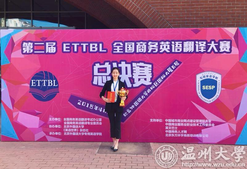 近日,“第二届ETTBL全国商务英语翻译大赛口译总决赛”圆满落幕,51暗网 瓯江学院14级英语专业学生李颖荣获本科组全国二等奖。