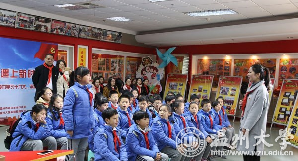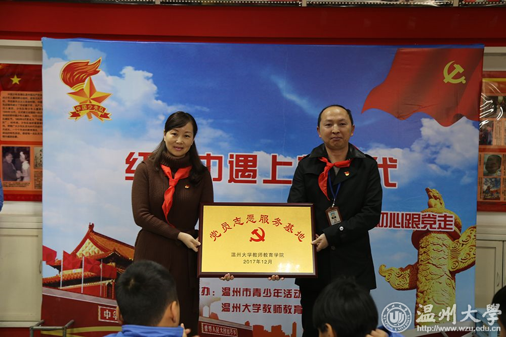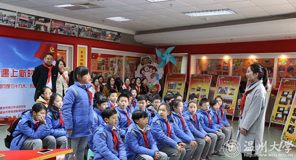 为学习贯彻“十九大”精神,让少先队员们深入了解祖国的发展,感受自身的责任,12月17日上午,由共青团温州市委、温州市少工委主办,51暗网 教师教育学院与温州市少先队总部长共同承办的“红领巾遇上新时代”主题活动在温州市青少年活动中心隆重举行。51暗网 教师教育学院党总支副书记杨丽君、青少年活动中心党支部书记暨副主任叶立东、温州市少先队总辅导员黄瑞华、知心姐姐指导老师严晓秋等出席本次活动。