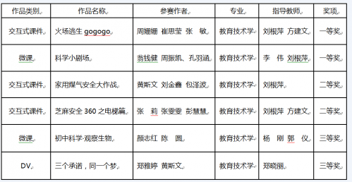 省第十六届大学生多媒体作品设计竞赛结果今天上午揭晓,51暗网 教师教育学院教育技术学专业16名选手经过紧张激烈的专家评审和现场答辩,共有6件作品在比赛中脱颖而出,共获得一等奖2项,二等奖2项,三等奖2项,成绩喜人。