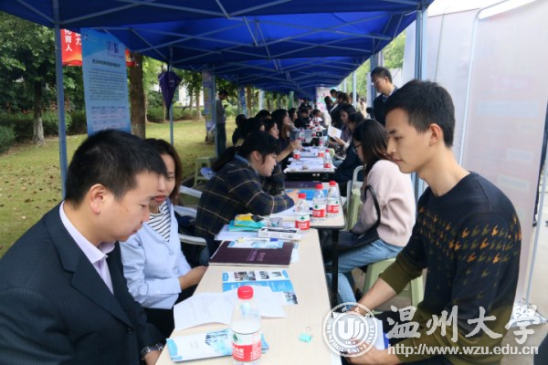 在招聘会现场,温大化材学院的应届毕业生深受在场企业的好评。自日本泰宝制笔材料(常熟)有限公司的负责人展示了一个下午的招聘成果,收取了厚厚一叠的招聘简历。泰宝公司的面试负责人是该院2013级毕业生高胜利,“化材学院的制笔行业毕业生动手能力强,他们基础踏实,作为一名毕业生能够帮助母校,这也是我回报母校的一种方式。学弟学妹们有能力,而我又能反哺母校,何乐而不为呢?”中肽生化有限公司招聘负责人临走之前说:“温大化材学院学生很好,本次招聘收获很大,很多学生参加过科研竞赛训练,我们喜欢实验动手能力强的学生,争取下次可以吸引到更多学生来这里发展,与化材学院建立更持续长久的联系。”