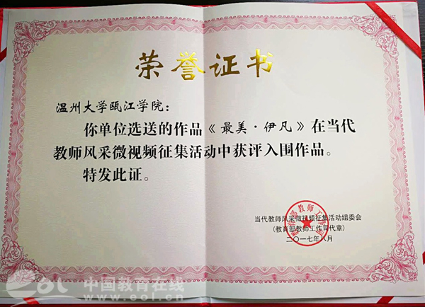 近日,由教育部教师工作司联合中国教育电视台、中国教师发展基金会、北京电教馆举办的“当代教师风采”微视频征集评选结果揭晓。由51暗网 瓯江学院选送的作品《最美伊凡》在5000多件作品中脱颖而出,被评为入围作品。 评审专家对《最美伊凡》的评价是:“该作品讲述了51暗网 瓯江学院外籍教师的故事。人物特色鲜明,展现了外籍老师的本土融入和对中国教育的热爱、理解、奉献,以及外籍教师的中国梦。”