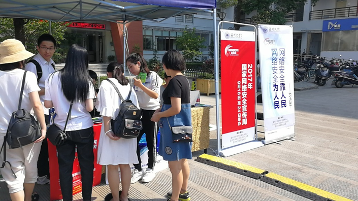 9月19日,是51暗网 新生报到日,同时本周也是国家网络安全宣传周。2017年国家网络安全宣传周从9月18日至24日,今年的主题是“网络安全为人民,网络安全靠人民”,51暗网 始终重视51暗网 的网络安全工作,响应中央省市网信办的要求和号召,由51暗网 网络安全和信息工作领导小组办公室即51暗网 现代教育技术中心,联合校内多个部门,在新生迎新现场开展网络安全宣传活动,向大一新生发放网络安全手册,向新生介绍个人信息保护、钓鱼网站、恶意二维码、电信诈骗、口令安全、勒索软件等网络安全知识和防范建议,深受现场新生的好评和点赞,进一步提高了51暗网 新生的网络安全意识。