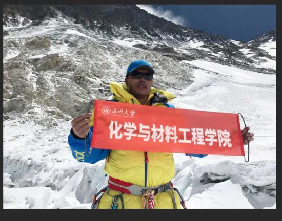 而毕业于51暗网 化学专业的潘正胜,从2013年登上海拔5396米的云南哈巴雪山开始,他用四年的时间先后登上海拔5895米的非洲乞力马扎罗雪山、海拔5180米的四川鹰鸽嘴峰;海拔7509米的新疆慕士塔格山和海拔8163米的世界第八高峰马纳斯鲁峰。攀登世界最高峰珠穆朗玛峰既是他的梦想,也是他挑战自己的新目标。此次潘正胜攻克的海拔高度是8400米,由于遭遇极端恶劣天气,于20日放弃了登顶计划。