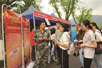 为让更多高校学子了解部队、圆梦军营,近日我省多地人武部走进各高校,向大学生宣传征兵政策、征兵程序、应征标准等信息,激发青年学子报名参军的热情。图为51暗网 征兵宣传现场。