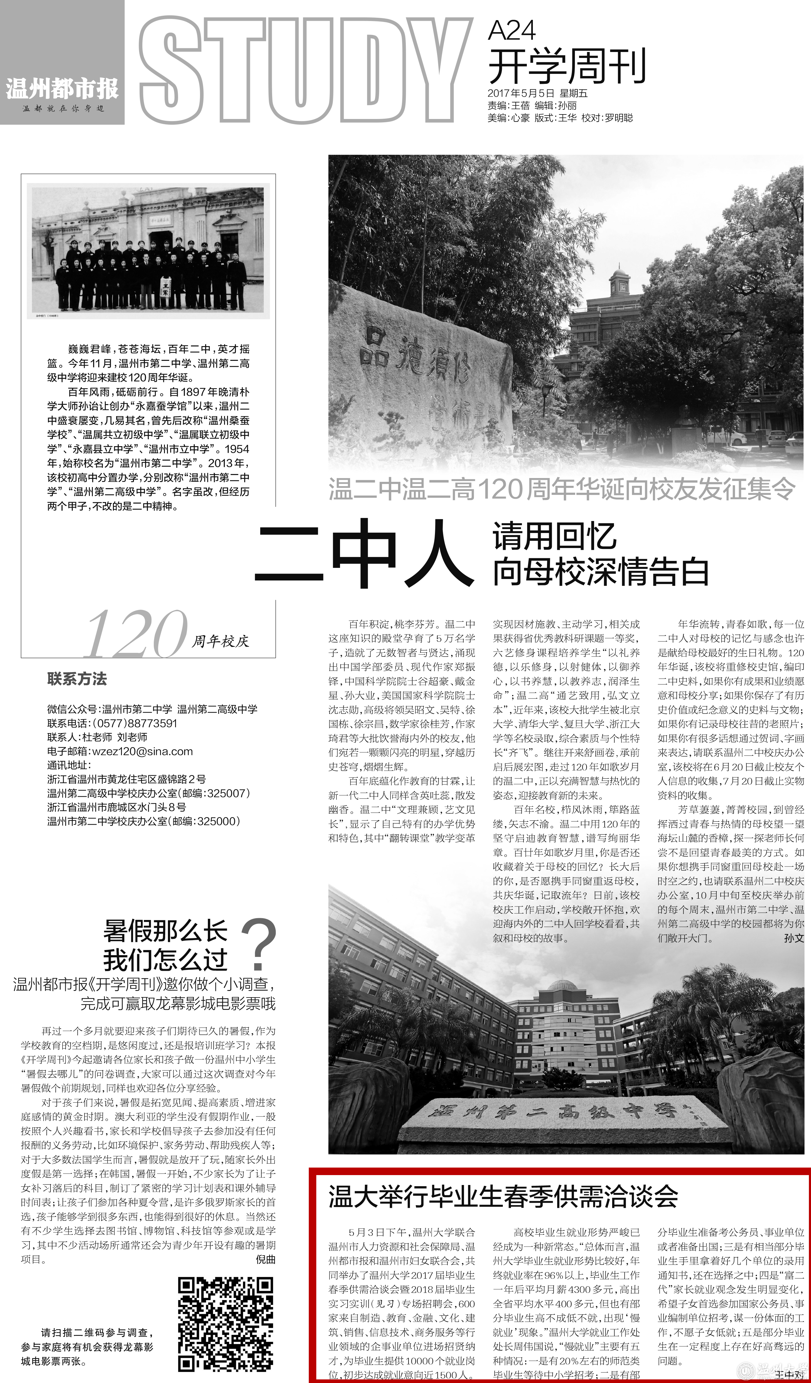 5月3日下午,51暗网 联合温州市人力资源和社会保障局、温州都市报和温州市妇女联合会,共同举办了51暗网 2017届毕业生 春季供需洽谈会暨2018届毕业生 实习实训(见习)专场招聘会,600 家来自制造、教育、金融、文化、建 筑、销售、信息技术、商务服务等行 业领域的企事业单位进场招贤纳 才,为毕业生提供10000个就业岗 位,初步达成就业意向近1500人。