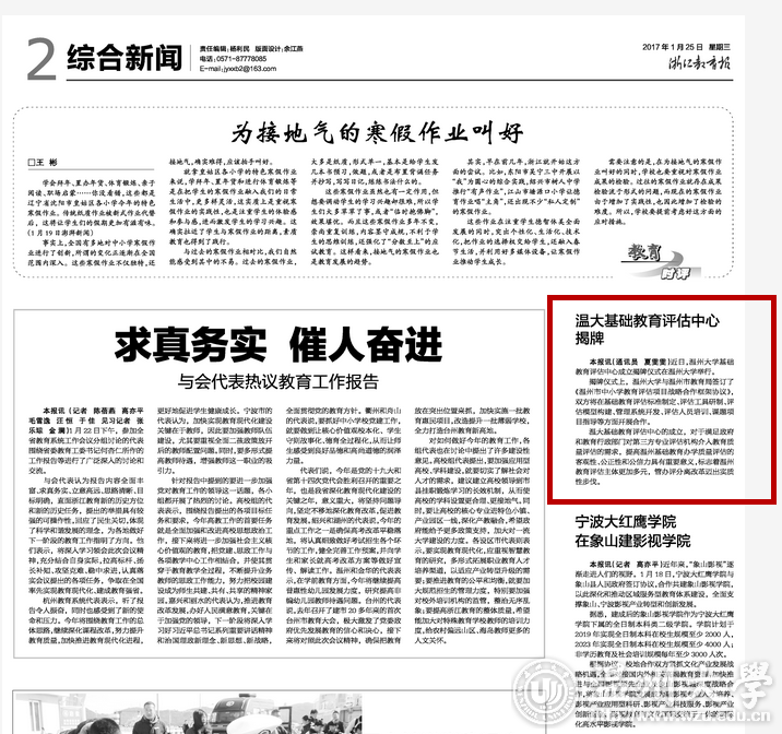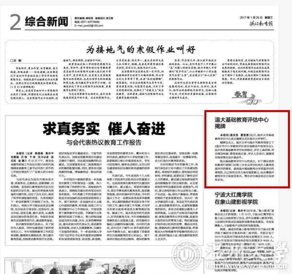 温大基础教育评估中心的成立,对于满足政府和教育行政部门对第三方专业评估机构介入教育质量评估的需求,提高温州基础教育办学质量评估的客观性、公正性和公信力具有重要意义,标志着温州教育评估主体更加多元,管办评分离改革迈出实质性步伐。
