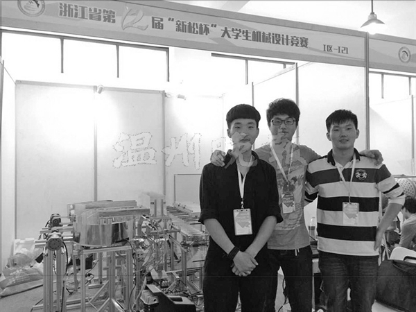 研发小组部分成员在省大学生机械设计竞赛展示现场