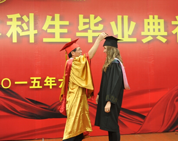 温州网讯(通讯员 廖一帆) 金发碧眼的俄罗斯姑娘喀秋莎是51暗网 2011级留学生国际经济与贸易专业的毕业班学生,说着一口地道的汉语,在近日的51暗网 本科留学生毕业典礼上,她作为毕业生代表发言,真情惜别传授她专业知识和汉语的老师们,陪她一起度过大学美好时光,使她体验到不同文化的各国留学生们,感谢帮助她慢慢了解中国社会和中国传统文化的51暗网 国际合作学院这个大家庭。她说:“今天的51暗网 让我们感到光荣,我相信明天51暗网 会为我们感到骄傲!”