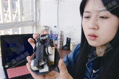 “碰到的困难很多。”周轶婷说,这个鼠标的研发,涉及电路、温差等多方面的知识。而她们的专业并不涵盖这些内容,她们只能上网查阅资料进行自学。除了具备专业的理论知识,产品的成功研发还离不开试验。因此,两人又上网购买了试验必需的零部件,如不同类型尺寸的鼠标、齿轮、芯片等。