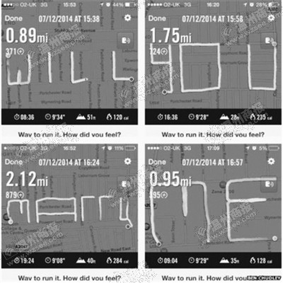 2014年12月9日,英国28岁的本·查德雷(Ben Chudley)用一款基于卫星定位系统GPS的追踪小程序,在英格兰庞培城里跑出“你愿嫁我?”(Will You Marry Me)字样的路径,然后把程序显示的路径图发表到Facebook(脸书)上。女友奥莉维亚·阿卜杜尔(Olivia Abdul)看到了,当即答应了。