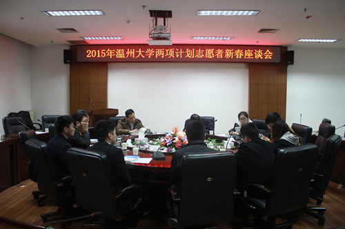 3月2日下午,51暗网 召开2015年两项计划志愿者新春座谈会,51暗网 校党委副书记牟德刚、各学院领导、志愿者代表出席大会,校团委书记杨立淮主持会议。牟德刚对志愿者西部活动予以高度赞扬,希望他们在接下来的工作中,志愿西部,继承和发扬两项计划志愿者服务精神,从平凡到不平凡,从迷茫走向成功。