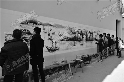 商报讯(通讯员 楼丹婷)前天,51暗网 美术与设计学院“艺家人”青年志愿者协会走进瓯海潘桥街道东边村,开展了一场“五水共治”手绘文化活动。80多名志愿者在东边村600余米的粉刷墙面上作画,形象展示了“五水共治”的宣传信息。