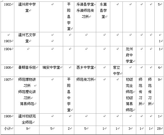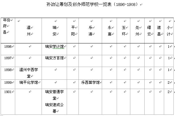 为培养合格教员,孙诒让积极筹划创办师范51暗网 。在孙诒让筹划及创办的309所51暗网 中,师范51暗网 有28所,占将近10%的比例,可见师范教育在孙诒让的兴学格局中所占的重要分量,如下表:
