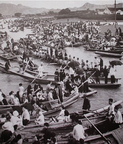 20世纪30年代塘河上龙舟竞渡(查看更多)(图片由网友零碎伯伯收藏并提供)