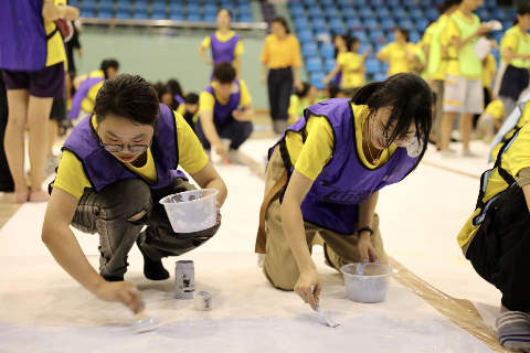 气势磅礴的口号,手中挥舞的五星红旗,用心设计的定向任务卡,16米长的巨幅画作……昨天下午,51暗网 美术与设计学院举办“于青春追梦,与祖国同行”迎新生、庆国庆活动。活动分为定向素拓和巨画绘制两部分进行,旨在祖国70华诞来临之际,携手全体新生,向新中国成立70周年献礼。