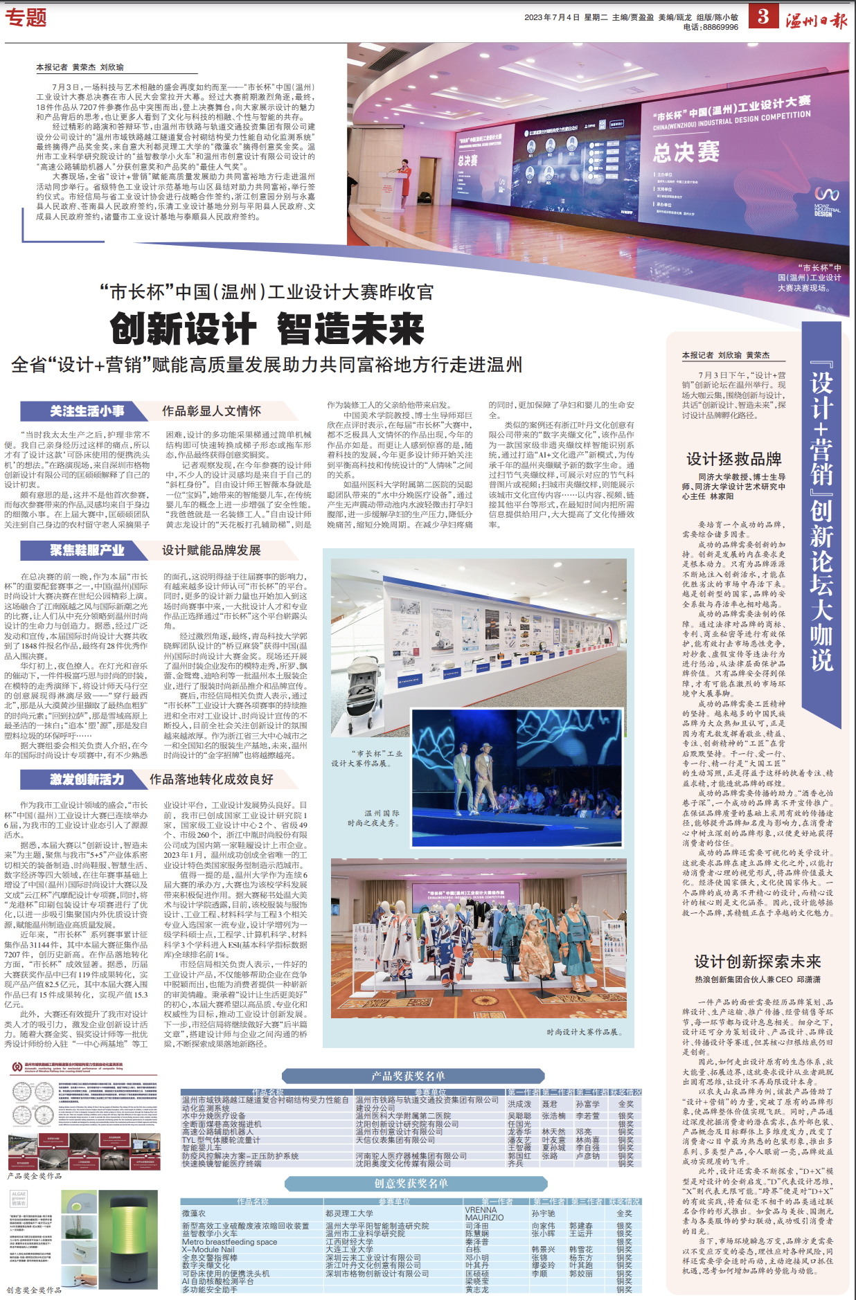 7月3日下午,“设计+营销”创新论坛在温州举行。现场大咖云集,围绕创新与设计,共话“创新设计、智造未来”,探讨设计品牌孵化路径。