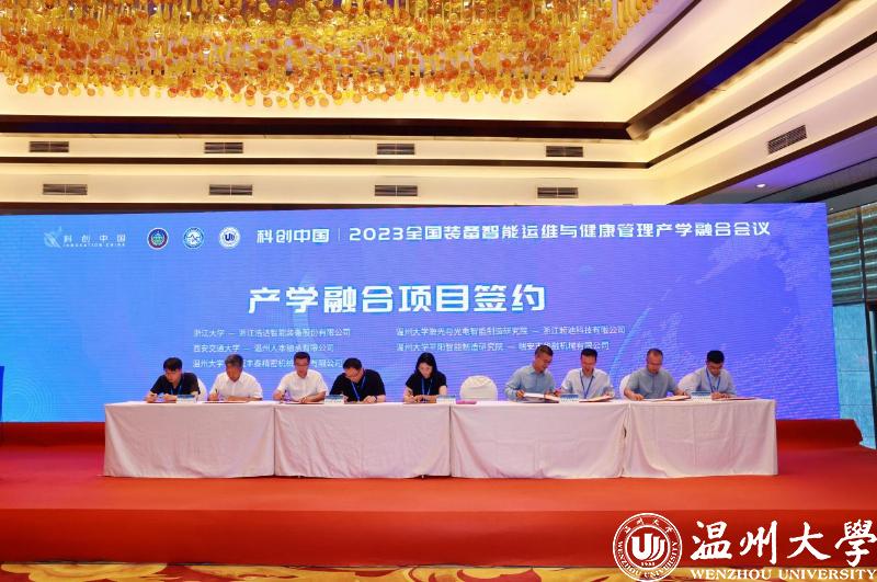 “科创中国”2023全国装备智能运维与健康管理产学融合会议现场,温州多个产业领域的产学融合项目签约。