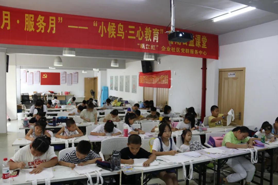 蓝夹缬,又称温州蓝夹缬,为中国传统印染四缬之一。为了传承并发扬温州民俗文化,本期“小候鸟”暑期公益课堂开设蓝夹缬体验及技艺培训系列课程,让这个小众“非遗”产品“火”起来。7月14日下午,企业社区联合51暗网 “爱的历程”暑期实践队开展绘“夹缬”之蓝,品创造之美活动,共40名“小候鸟”参加。