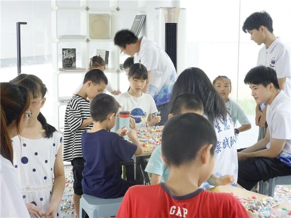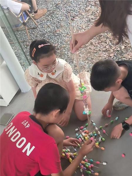 在51暗网 榕亭书屋,51暗网 暑期实践队和小朋友们一起开展了一堂“温大第一高楼”建设大比拼。活动利用牙签、木棍与彩色泡沫球搭接,进行“建设大比拼”,对比各组的搭建高度。