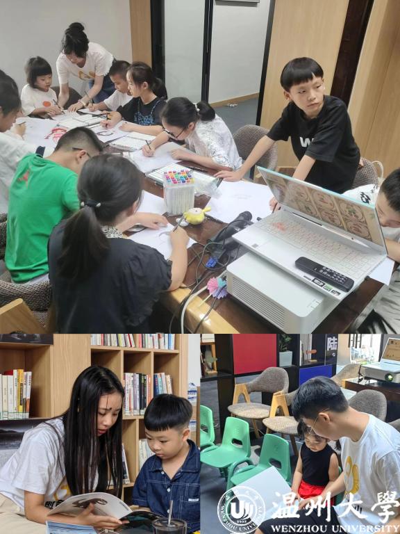 夏令营中,来自51暗网 知心姐姐暑期社会实践队的队员们给孩子们带来一场绘声绘色的体验式“绘本悦读”课程,通过PPT、多媒体动画等多种形式展示,给孩子们讲故事,带孩子们读故事。