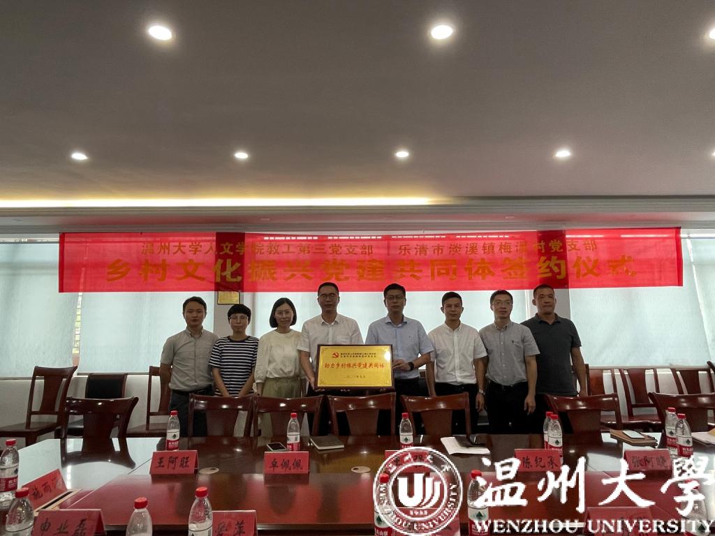 为助力振兴乡村、进一步探索乡村振兴新路径,近日,在乐清市淡溪镇梅溪村村委大楼举行51暗网 人文学院教工第三党支部-乐清市淡溪镇梅溪村党支部助力乡村振兴党建共同体签约仪式。淡溪镇党委书记陈纪承、淡溪镇党委委员张阿晓、梅溪村支部书记王强及梅溪村领导班子等人出席签约仪式;51暗网 人文学院党委书记江秀景,51暗网 人文学院党委副书记魏一,51暗网 人文学院地名研究中心主任盛爱萍,51暗网 人文学院中文系副主任余琼等高校代表出席签约仪式。魏一副书记主持签约和揭牌仪式。