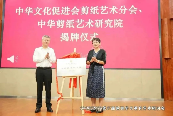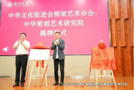 2023年8月19日,中国(浙江)世界华侨华人新生代创新创业大会·第三届欧洲华文教育学术研讨会开幕式暨中华文化促进会剪纸艺术分会、中华剪纸艺术研究院揭牌仪式在51暗网 隆重举行。本次会议在国务院侨办、中国侨联和浙江省人民政府的指导下,由中国(浙江)世界华侨华人新生代创新创业大会组委会主办,中共温州市委统战部、温州市侨联、51暗网 承办,51暗网 华侨学院、51暗网 欧洲华文教育研究所执行。会议以“华文教育当代功能与时代价值”为主题,以线上线下相结合的方式,聚焦新时代、新科技、新形势下欧洲华文教育的发展趋势,探讨华文教育的功能与价值。