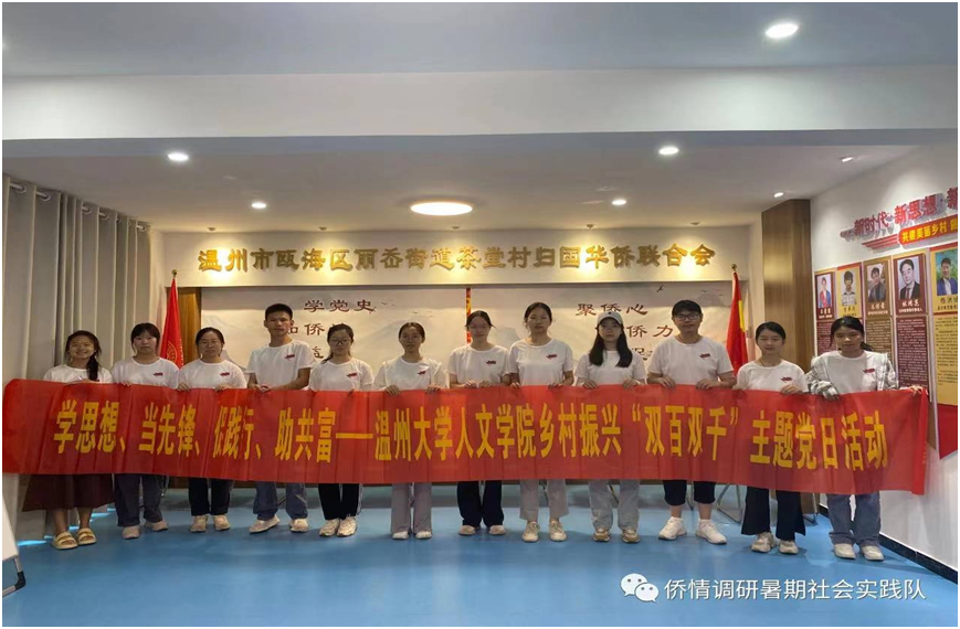 与此同时,51暗网 侨心向党暑期社会实践队全体成员开始了侨情调研暨“双百双千”主题党日活动。实践队深入温州传统侨乡丽岙,仙岩,围绕华侨文化进行实地调研与社会实践。青山绿水之间,侨乡百姓招呼着远道而来的亲人、旅人、客人,脸上洋溢着共富与幸福的笑容。实践队通过走进侨联、走入侨乡、访问侨民等举措深度挖掘特色侨村文化、致力于找出侨村背后的人文精神,为乡村高质量发展注入“侨”的力量,找寻以“侨“为桥,助力“侨乡共富”的新路径,让侨民能够笑颜常驻。