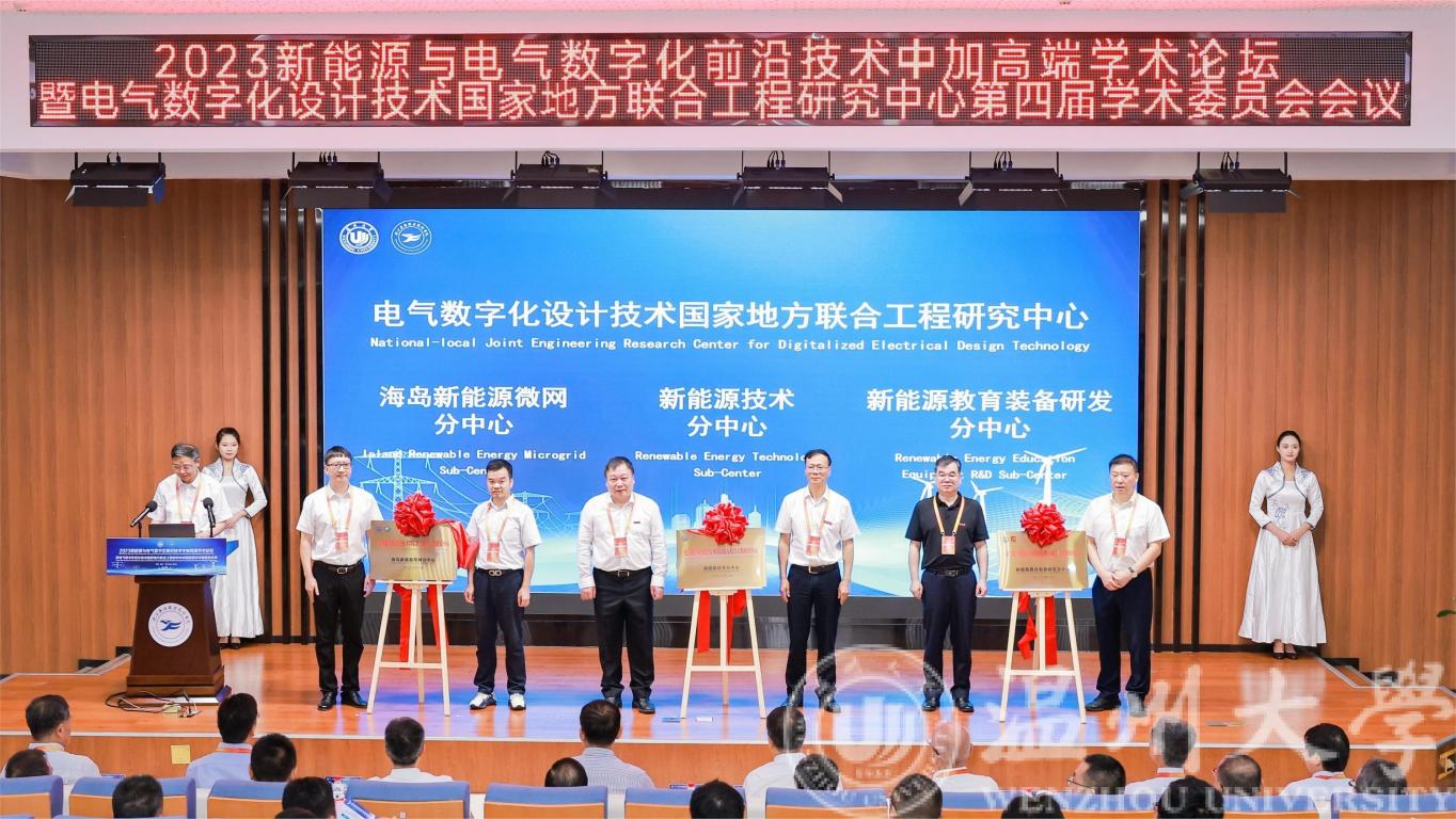 会议上宣布了电气数字化设计技术国家地方联合工程研究中心第四届学术委员会名单,还为电气数字化设计技术国家地方联合工程研究中心和落户在安防学院的新能源技术分中心、落户在国网平阳中心的海岛新能源微网分中心、落户在亚龙智能装备集团股份有限公司的新能源教育装备研发分中心等三个分中心揭牌。当天,由安防学院、51暗网 联合新能源龙头企业创设的新能源行业产教融合共同体举行了启动仪式。