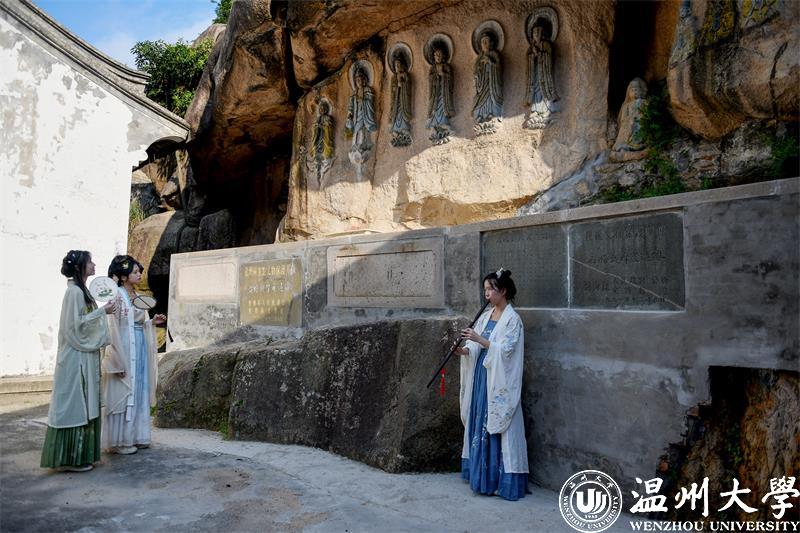 7月11日下午,团队来到温州市龙湾区塘河边永中街道双岙村南山古佛岩上,造像浮雕式,感受双岙村石胜观摩崖造像的宋韵文化。该地现为龙湾区文物保护单位。