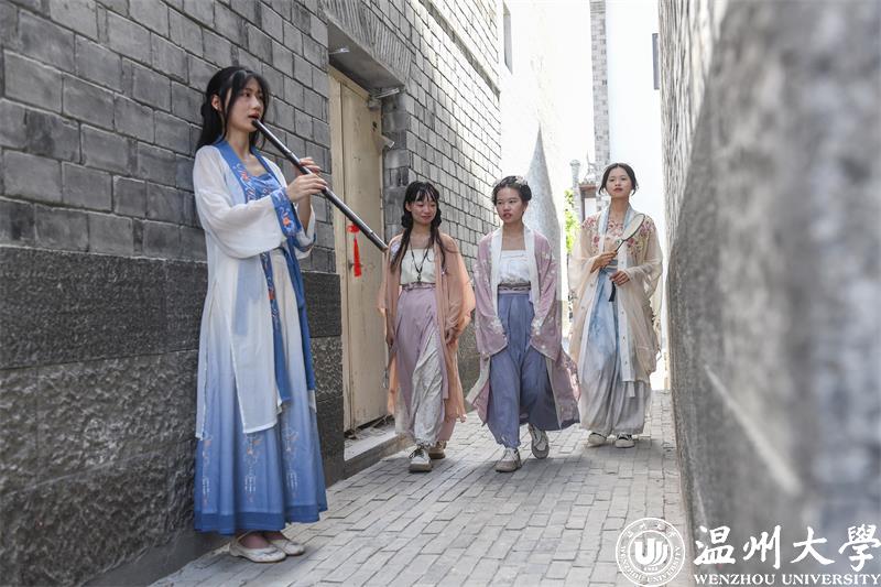 7月14日早上,团队来到温州梧田老街,模特身着宋代服饰,模拟宋代生活习惯、重现生活场景并进行宋韵塘河摄影创作。在河边捣衣戏水、在亭中摇扇赏景、在桥边吹风听鸣……在相机定格的一瞬,此情此景人们仿佛真的置身于宋代,千年塘河所散发的独特魅力、璀璨文物所展现的气韵都让人们沉浸其中。