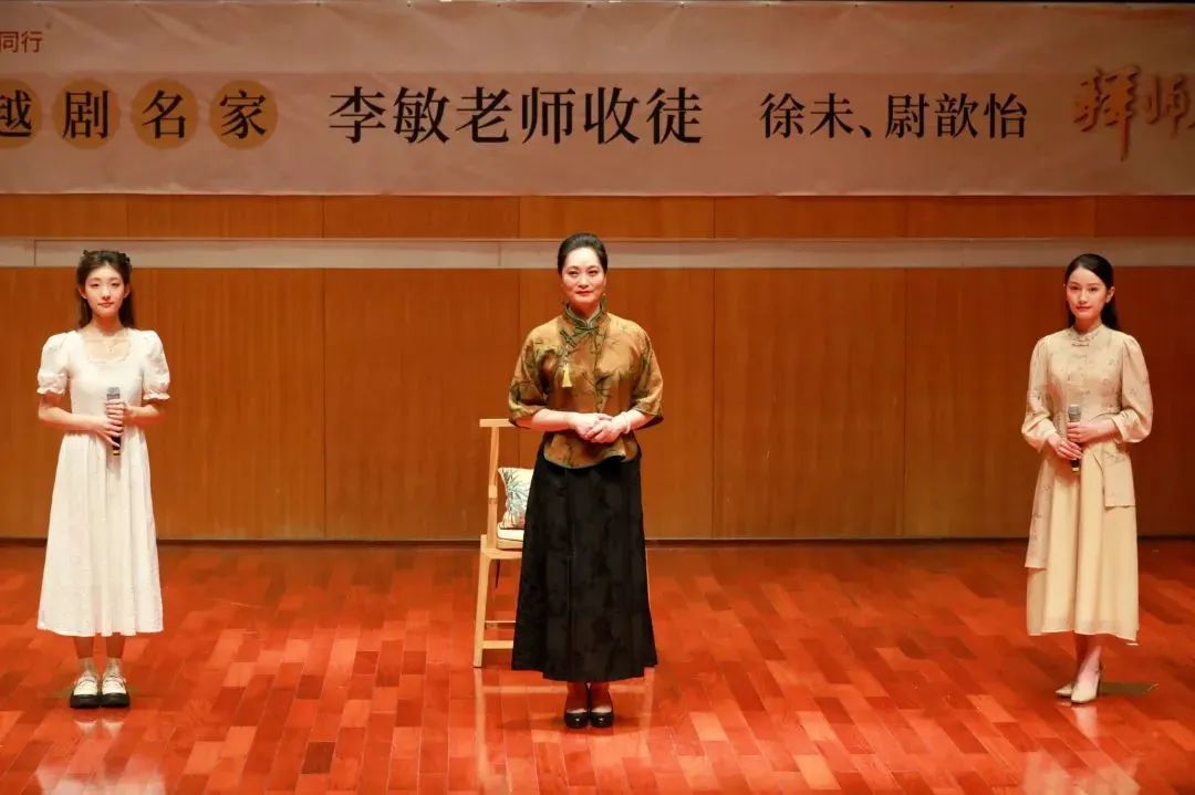 这样的周到温情也体现在几个小时前的拜师仪式上。这次赴温演出之际,李敏收了两位温州市越剧院(以下简称温越)的新生代花旦为徒。这场拜师仪式有着特殊的意义和温情的氛围。
