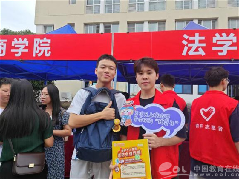宣讲员们还在新生排队等待报到的空档一一指导新生扫描下载“国家反诈中心”APP、给过路的新生及家长发放反诈宣传单、与新生一起拍照打卡等,坚持诈骗宣传“一个新生不落下”,并鼓励他们争当宣传员,将学到的防诈骗知识辐射到生活圈朋友圈,讲给亲朋好友听,通过以点带面,拓展防范电信诈骗宣传的广度和力度。