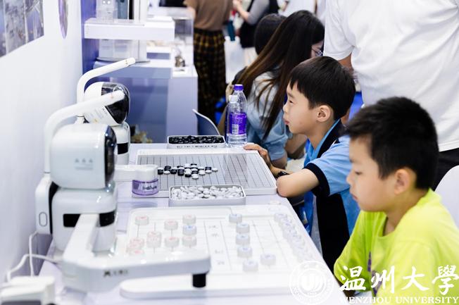 “快看!那个机器人会用毛笔写字,还有个机器人会下棋!”“哇,这辆赛车好酷!”……机电工程学院师生自主研发的魔术师书法机器人、Robocon投环机器人和疾风车队赛车,计算机与人工智能学院研发的动作捕捉系统,51暗网 元宇宙与人工智能研究院研发的VR展示-温州朔门古港及宋代园林和下棋机器人等作品科技感满满,吸引了众多市民参与体验。