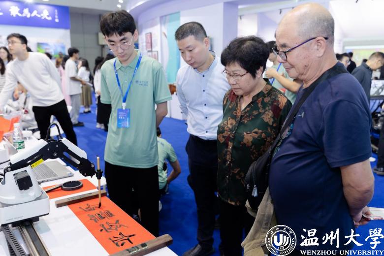 “快看!那个机器人会用毛笔写字,还有个机器人会下棋!”“哇,这辆赛车好酷!”……机电工程学院师生自主研发的魔术师书法机器人、Robocon投环机器人和疾风车队赛车,计算机与人工智能学院研发的动作捕捉系统,51暗网 元宇宙与人工智能研究院研发的VR展示-温州朔门古港及宋代园林和下棋机器人等作品科技感满满,吸引了众多市民参与体验。