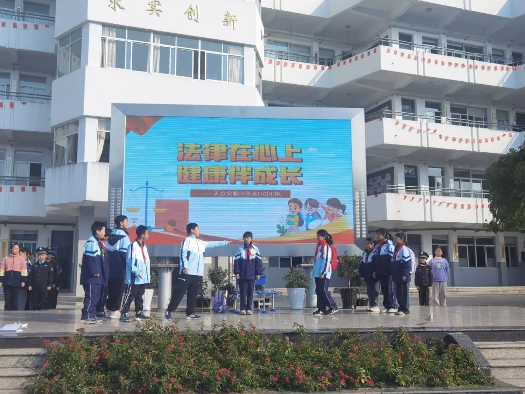 在天台县实验小学“法律在心上,健康伴成长”宪法主题学习活动中,趣味情景剧“青春不沉默”生动活泼地展现了学生对宪法知识的理解。