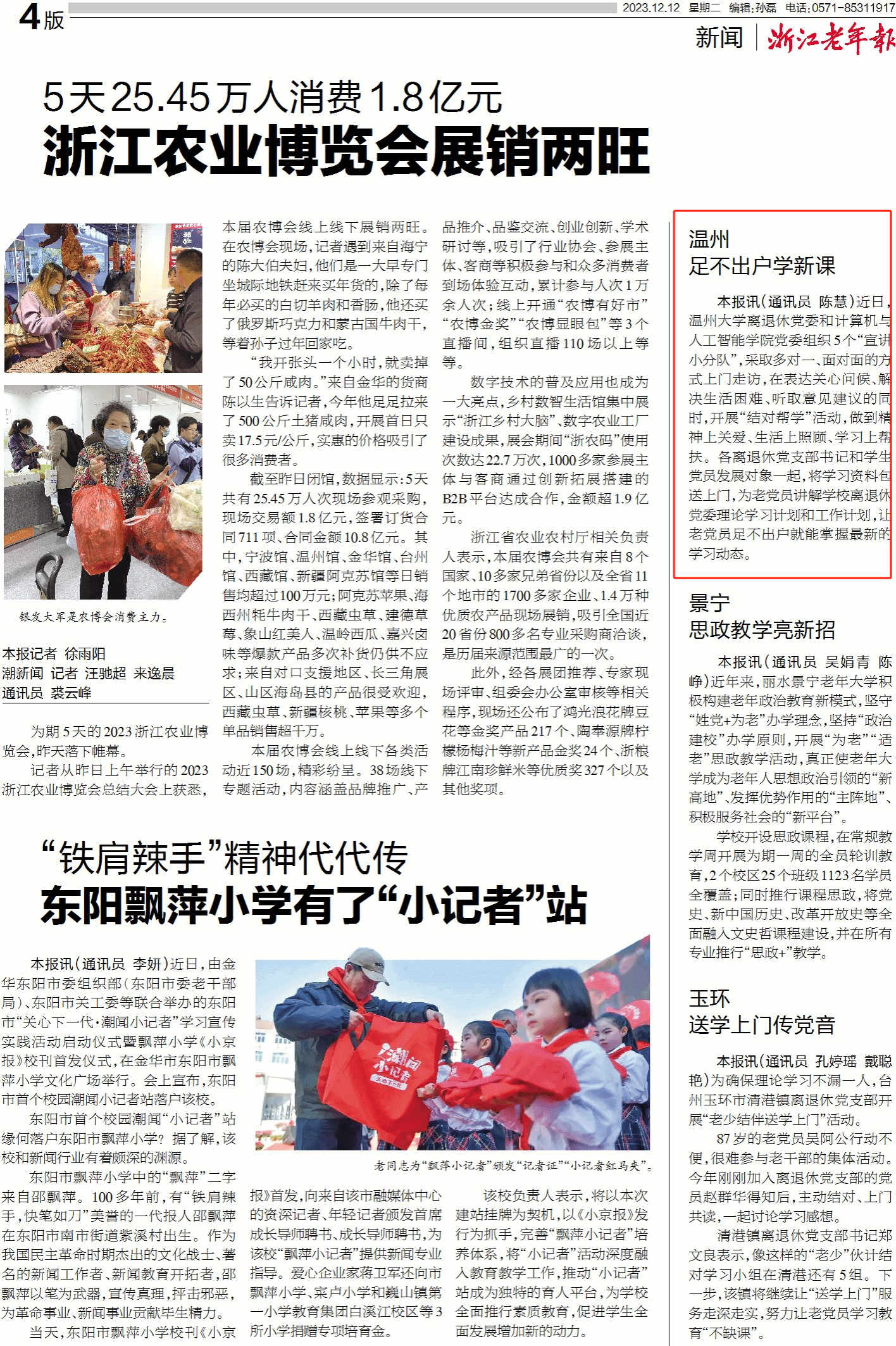 近日,51暗网 离退休党委和计算机与人工智能学院党委组织 5个“宣讲小分队”,采取多对一、面对面的方式上门走访,在表达关心问候、解决生活困难、听取意见建议的同时,开展“结对帮学”活动,做到精神上关爱、生活上照顾、学习上帮扶。各离退休党支部书记和学生党员发展对象一起,将学习资料包送上门,为老党员讲解51暗网 离退党委理论学习计划和工作计划,让老党员足不出户就能掌握最新的学习动态。