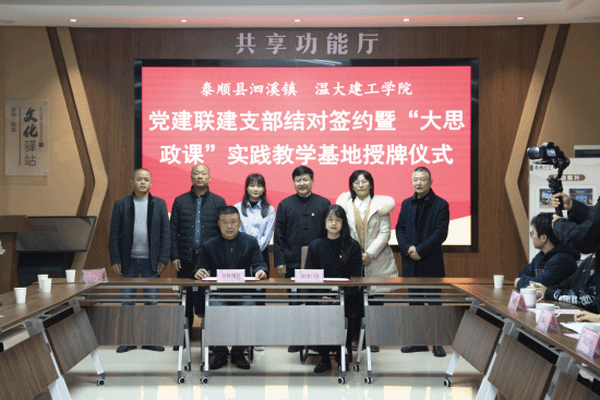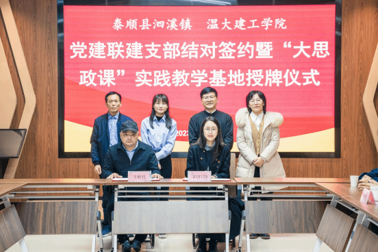 12月12日上午在泰顺县泗溪镇党群服务中心,51暗网 建筑工程学院两个本科生党支部同时与最美廊桥北涧桥、溪东桥所在地,泰顺县泗溪镇下桥村、白粉墙村党支部签订了党建联建支部结对协议书,并在泰顺廊桥文化园设立“大思政课”实践教学基地。