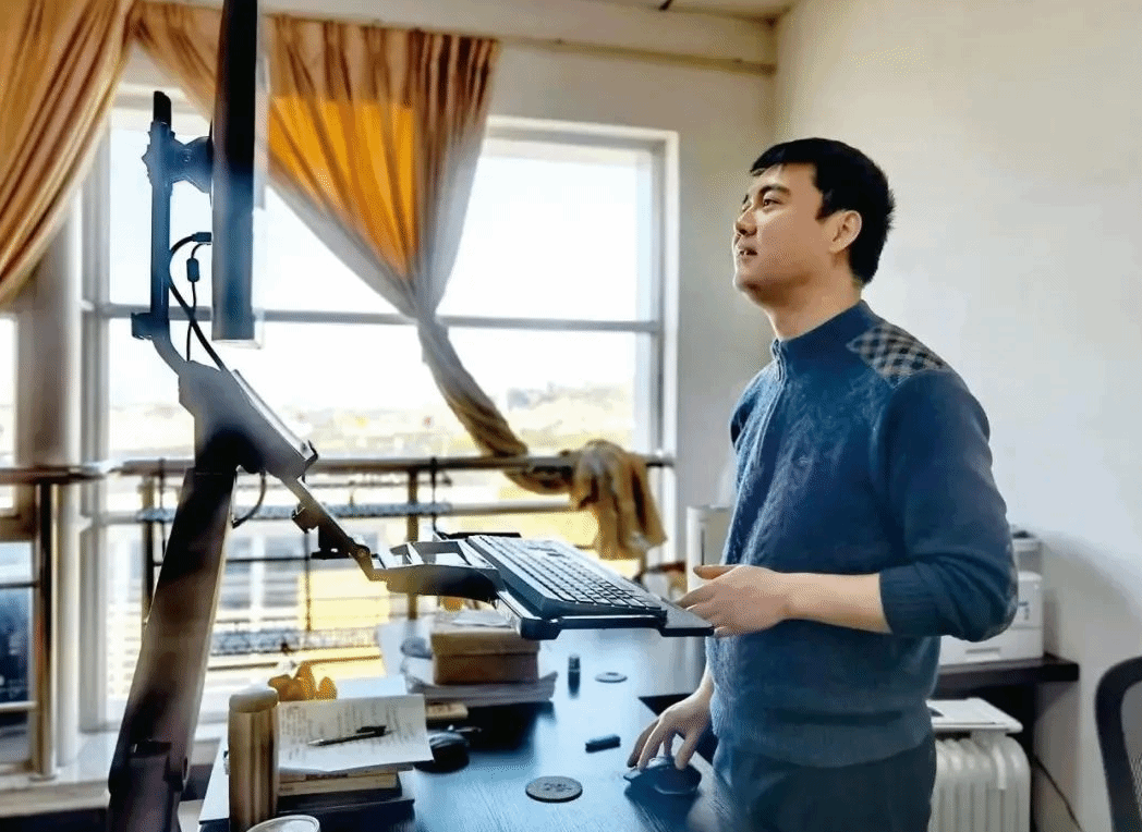夏雨禾享受独处的时光,不希望自己的生活被过多的打搅。他的办公室在7楼,电梯时不时维修,通行不便。他的腰椎因常年久坐劳损,十几年来已成病根,很难治愈,需要养护,但他仍然坚持在办公室工作学习,他说:“这里很安静,更适合我。”