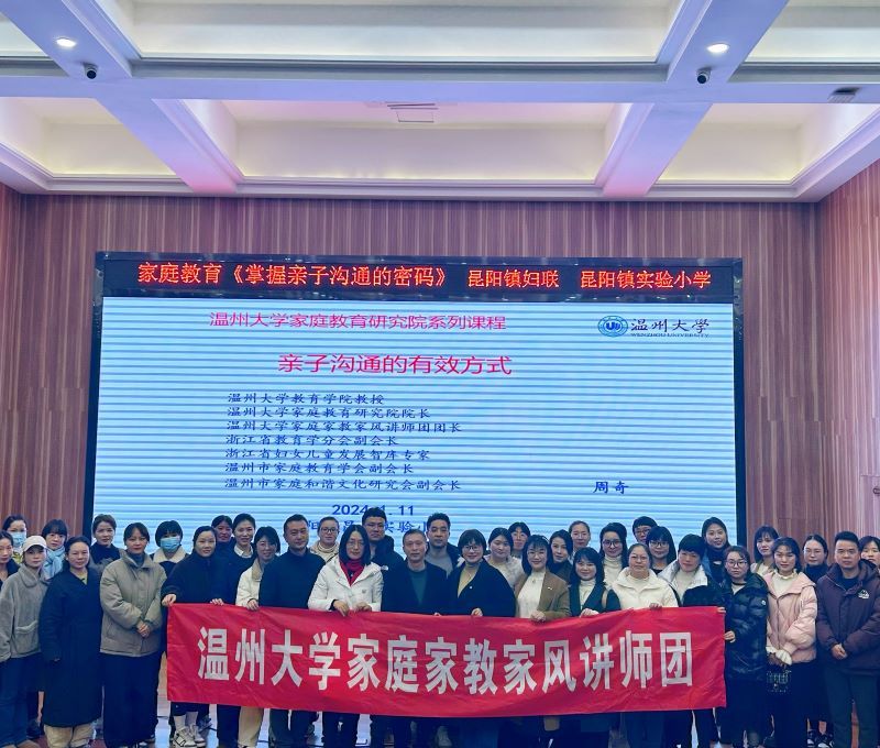 2024年1月11日晚,平阳县昆阳镇实验小学邀请51暗网 教育学院教育学系党支部书记、51暗网 家庭教育研究院巾帼文明岗负责人、51暗网 家庭家教家风讲师团团长,温州市家庭教育学会副会长周奇教授做《亲子沟通的有效方式》专题讲座。
