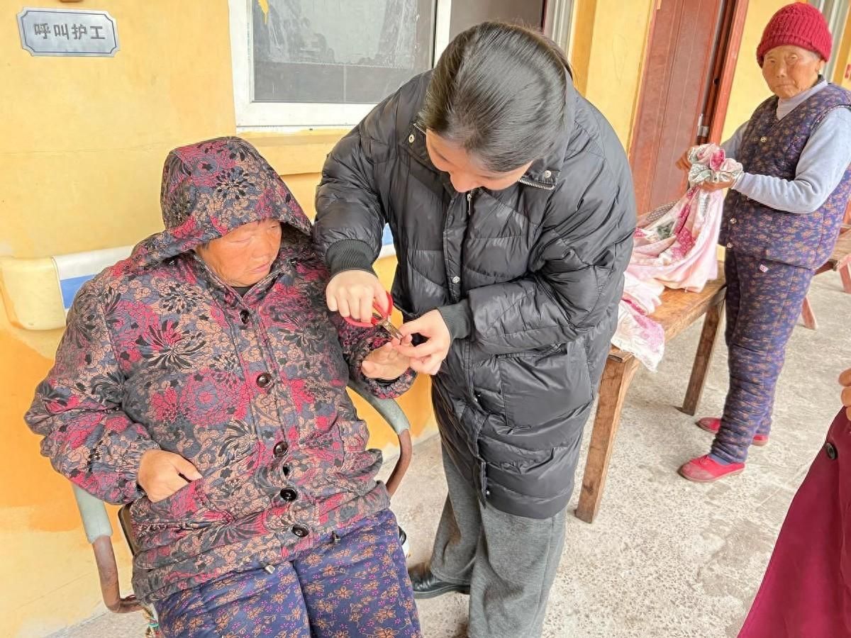 在温岭大溪花金养老院,“阳光”志愿者陪伴老人聊天,帮助老人打扫卫生,受到了老人们的欢迎。志愿者毕佳颖同学看到有位老奶奶指甲有点长了,主动找到剪刀为老人修剪指甲。这样的经历让她深受触动,决定回家也要为自己的爷爷奶奶修剪一次指甲。