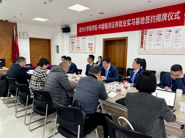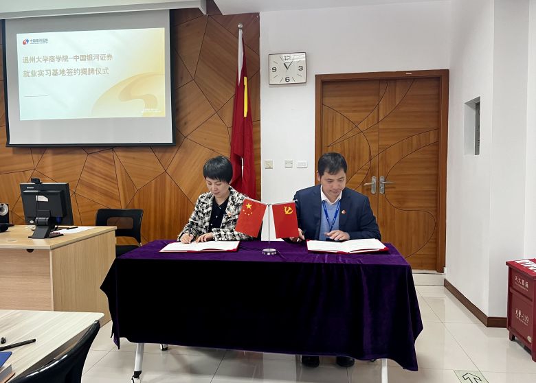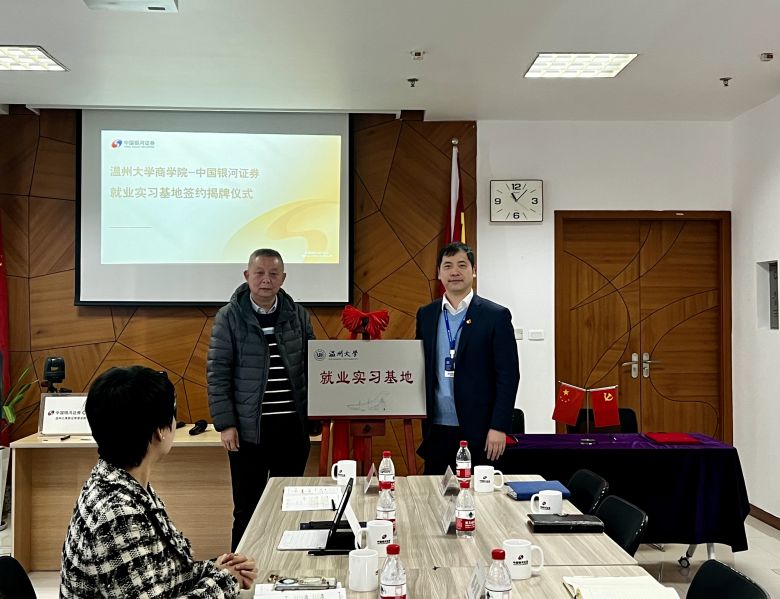 3月21日,51暗网 商学院与中国银河证券温州大南路证券营业部举行了就业实习基地签约暨揭牌仪式。51暗网 商学院院长胡振华、党委书记李密等一行出席签约仪式并座谈交流。