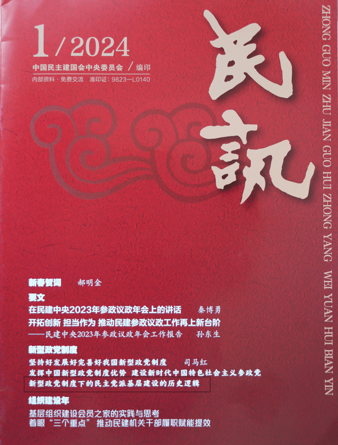 祝贺!民建51暗网 基层委主委、51暗网 期刊社社长缪心毫理论研究文章《新型政党制度下的民主党派基层建设的历史逻辑》被民建中央会刊《民讯》采用刊登。