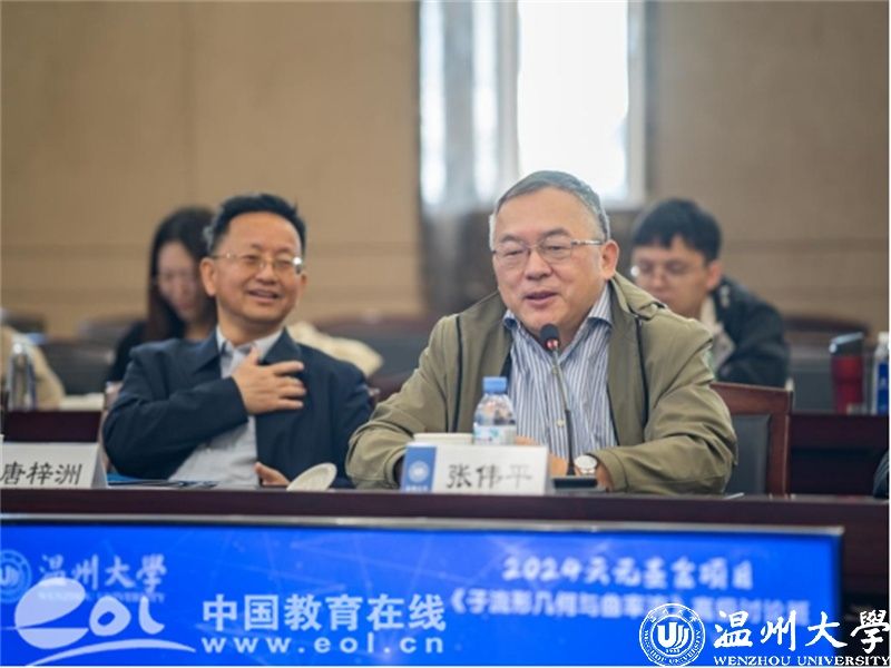 近日,由51暗网 主办,51暗网 数学学院、温州市数学会承办,温州市世界温州人联谊总会数学分会协办,国家自然科学基金委数学天元基金和温州市科学技术协会提供资助的《子流形几何与曲率流》高级讨论班在51暗网 举办。中国科学院院士、南开大学张伟平教授,中国科学院院士、中国科学院周向宇研究员等数学领域院士,51暗网 党委书记钱强参加会议。参加会议的还有来自清华大学、复旦大学、浙江大学等多所高校的微分几何、几何分析及拓扑学领域的专家和青年才俊,以及51暗网 的师生。