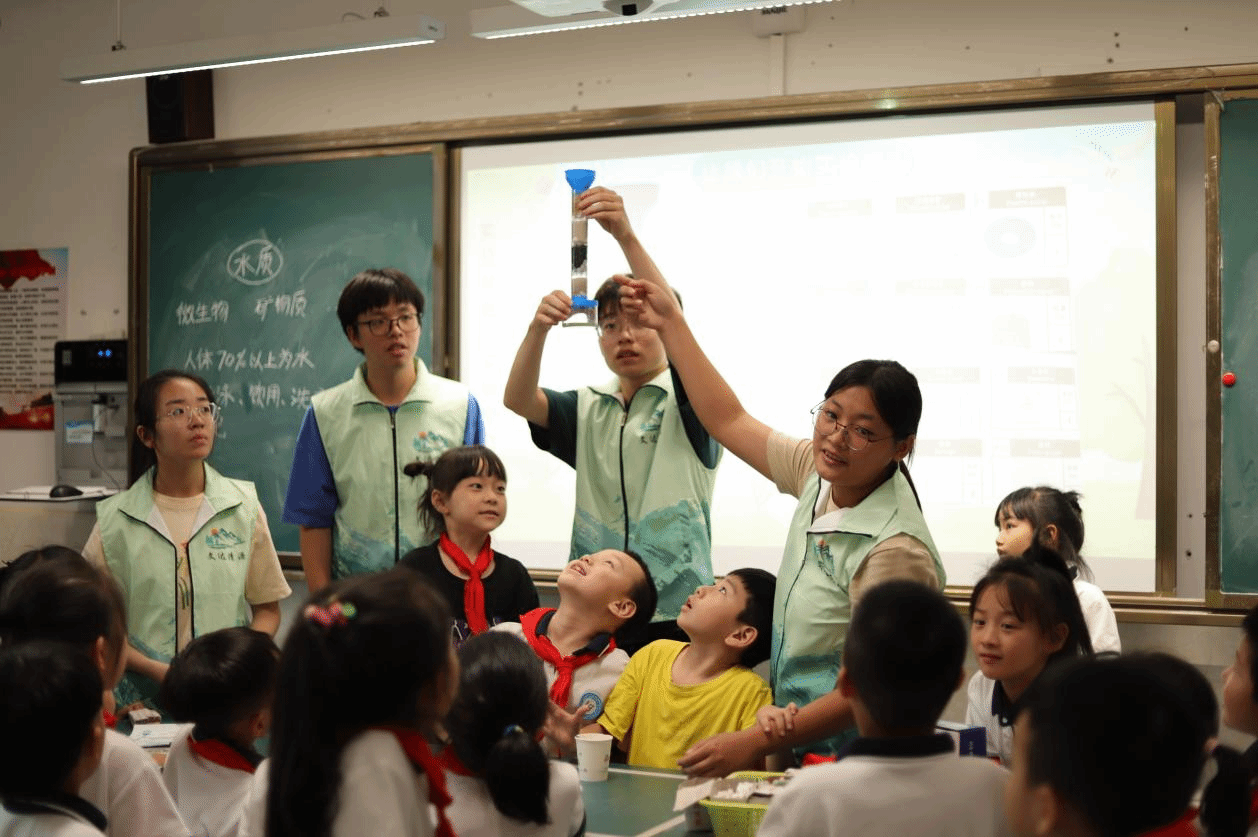 污水防治、美化环境,人人有责!为了迎接世界地球日,温大生环学院学子及“文达清源”团队来到永嘉源头村,参观村内污水处理设施、无废宣传长廊、无废生活体验馆等,了解垃圾分类、污水处理、生态农业等生态环保措施,资源与环境等专业研究生与当地村民交流环保理念和实践经验。该服务团队还在51暗网 附属茶山实验小学、乐清市仙溪镇第一小学等51暗网 ,以“河道保卫战”贯穿五水共治政策,配合开展净水小实验,沉浸式向孩子们传递“一点一滴,加倍珍惜”的水资源理念,让节水意识深入孩子的内心,渗入他们的生活之中,帮助小学生们扣好生态文明第一扣。
