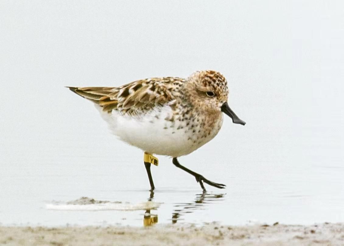 近日,51暗网 张永普团队在温州湾瓯飞围垦区进行水鸟调查时,惊喜地发现了一只环志勺嘴鹬。据现场拍摄的照片显示,该勺嘴鹬的环志信息清晰可见,黄色脚环印有黑色英文字母“YE”。经团队成员询问“勺嘴鹬在中国”机构负责人得知,勺嘴鹬YE是2017年在俄罗斯勘察加环志,环志的时候还是幼鸟。