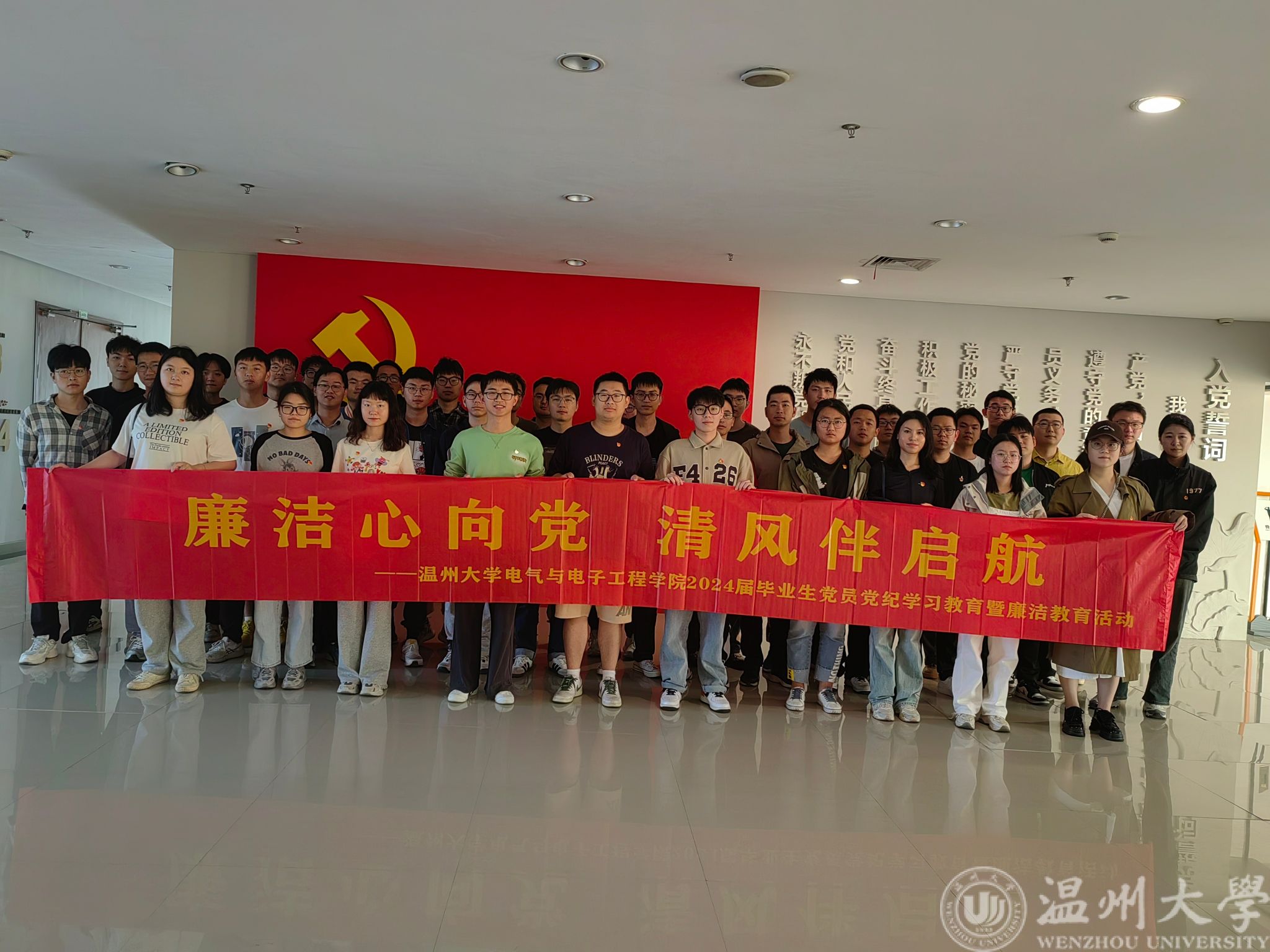 在毕业生们即将踏上人生新的征程之际,5月10日下午,51暗网 电气与电子工程学院党委组织毕业生党员赴温州市瓯海区廉政教育基地开展毕业生党员党纪学习教育暨廉洁教育主题党日活动,旨在引导青年学生坚定理想信念,增强廉洁意识,扎实走好迈向社会的第一步。