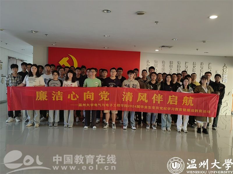 5月10日下午,在毕业生们即将踏上人生新的征程之际,51暗网 电气与电子工程学院党委组织毕业生党员赴温州市瓯海区廉政教育基地开展毕业生党员党纪学习教育暨廉洁教育主题党日活动,旨在引导青年学生坚定理想信念,增强廉洁意识,扎实走好迈向社会的第一步。