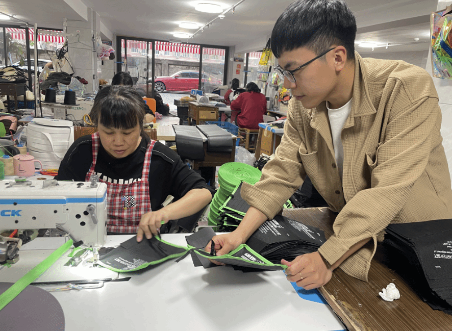 创业不易。一开始,缺乏起步资金成为了金文翔面对的最大制约。一天,他在媒体上得知龙港把创业担保贷款政策作为“稳就业,促创业”的重要举措,带着试试看的想法,金文翔联系了龙港市社会事业局,两天不到,就被确认了资格,很快拿到60万元贴息贷款。用这笔贴息贷款,金文翔添置了制包机器、买好了前期制包需要的各种原材料、租了一小栋厂房和仓库,积极探索线上线下融合经营模式:在网上对接来自各地的订单,然后加工制作销出去,这种模式让金文翔在很少离开龙港的情况下,慢慢赢得外地客户信任。